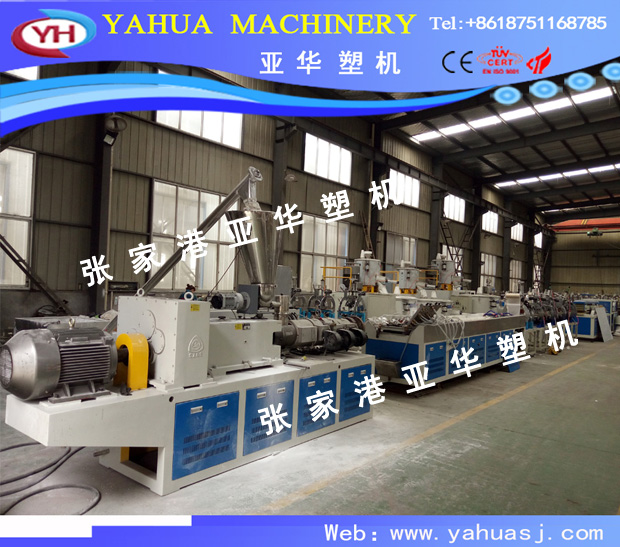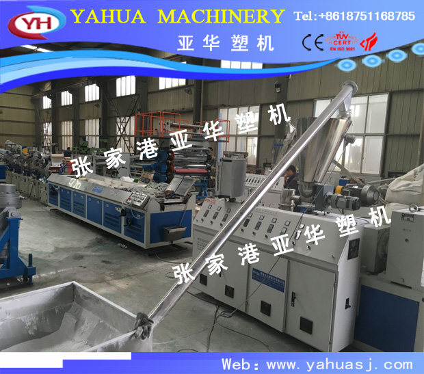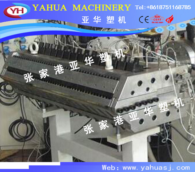 PVC artificial marble, imitation marble) profile production line equipment is mainly composed of the following: 51, 65, conical double screw plastic extruder, die, cooling vacuum calibrating bench (), tractor, cutting machine, flip, high speed mixer, plastic crusher, extrusion forming on the surface treatment (heat transfer or water transfer printing), etc.