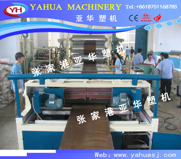4、牽引切割系統(tǒng):采用輥筒式組合牽引機(jī),使?fàn)恳y(cè)量調(diào)節(jié)簡(jiǎn)便,輥筒牽引機(jī)與寬幅切割機(jī)電氣同步控制,使板材切口平直。 整條生產(chǎn)線外形美觀,電氣操作簡(jiǎn)便。生產(chǎn)的板材發(fā)泡倍率高,表面硬度高,表面平整耐磨等特點(diǎn)。本公司提供配方和工藝技術(shù)。PVC木塑結(jié)皮發(fā)泡板材生產(chǎn)線的生產(chǎn)工藝流程: 配料—— 高冷混—— 擠出 發(fā)泡—— 冷卻定型—— 噴淋—— 牽引切割—— 堆料—— 檢驗(yàn)—— 成品入庫(kù)
