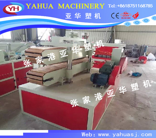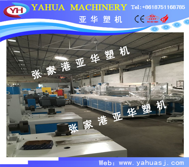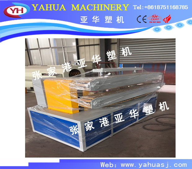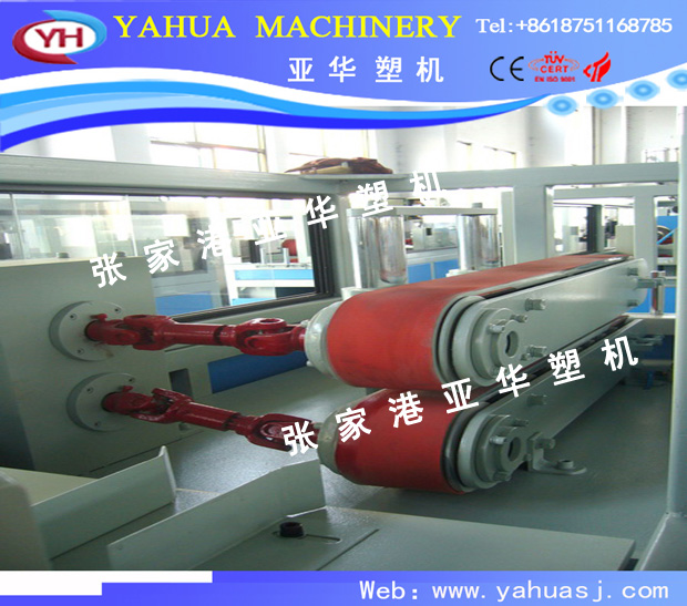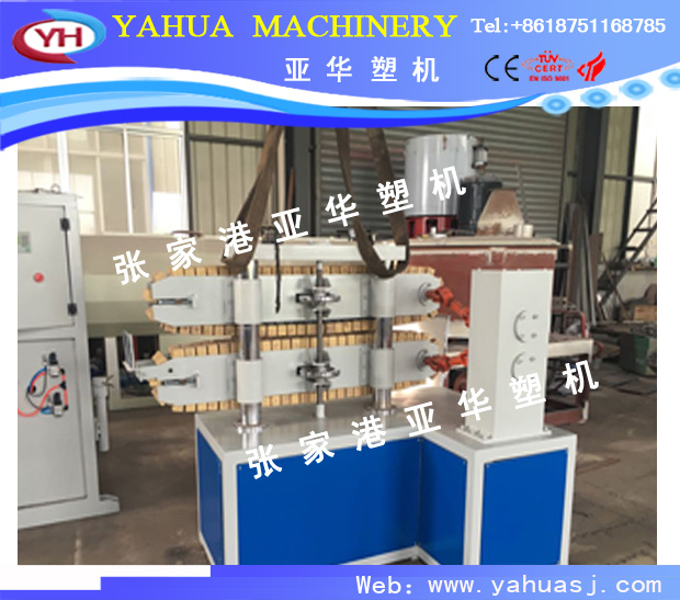 Adjust the traction device traction tracks relative speed with plastic extruder, get different wall thickness of pipe. When met the requirement of the pipe length, cutting device in tuned automatically cut program.