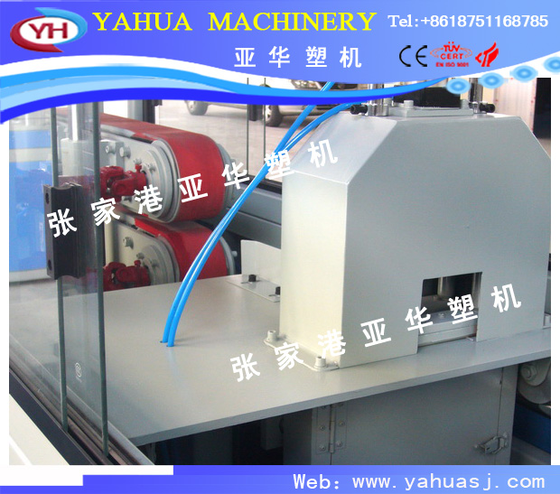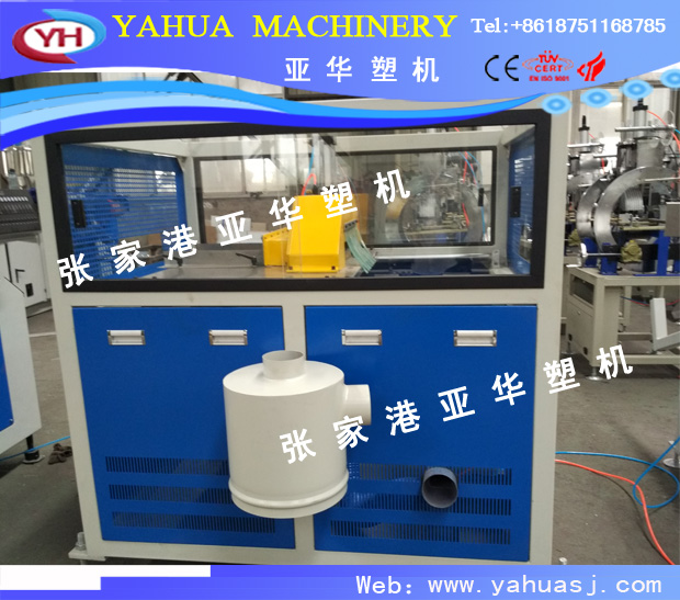 Tracking cutting machine, cutting machine for saw blade type series of cutting tool type, main and extrusion line, plastic pipe material profile for plastic pipes, profiles and all kinds of plastic products of fixed-length cutting, the applicable scope is wide, for convenience.
