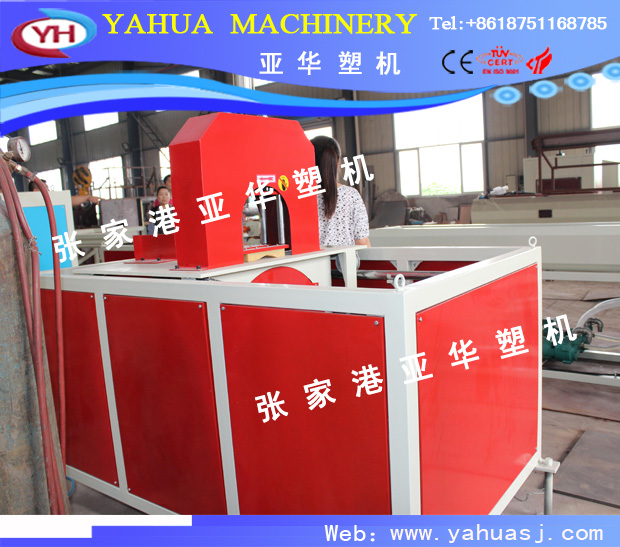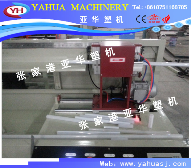 Tracking cutting machine, cutting machine for saw blade type series of cutting tool type, main and extrusion line, plastic pipe material profile for plastic pipes, profiles and all kinds of plastic products of fixed-length cutting, the applicable scope is wide, for convenience.