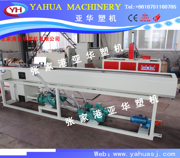 (6) of PVC plastic pipe extrusion production line cutting machine: according to the required length by travel switch control, automatic cutting, and delay the plane, the water production, cutting machine to pronounce long switch signal instructions, complete the whole cutting process in cutting process and the pipe running in sync, cutting process completed by electric and pneumatic drive, cutting machine is equipped with suction device, sucked out cutting the debris in a timely manner, and recycling.