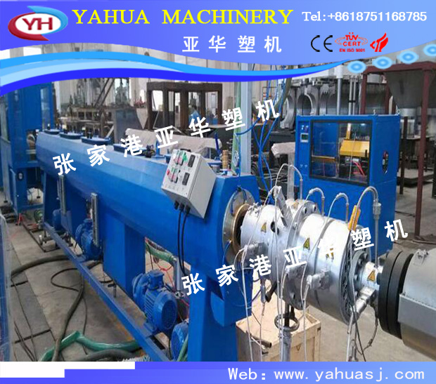本機用于PP-R管生產線的管材的擠出成形,PP-R料由真空上料機負壓上料,經干燥料斗上料進入機筒,物料經螺桿的輸送、壓縮、塑化、計量,進入成型模具。本機機筒螺桿材質均為38CrMoAlA,經調質、氮化處理。精度高,抗疲勞。減速箱齒輪材質為20CrMnTiA,經滲碳處理。 |