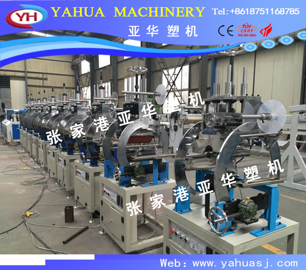 PVC人造大理石(仿大理石)型材生產線設備主要由以下組成:51、65錐形雙螺桿塑料擠出機、模具、(冷卻真空定型臺)、牽引機、切割機、翻轉架、高速混合機、塑料破碎機、擠出成型后進行表面處理(熱轉印或水轉印)等組成。
